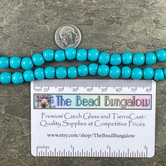 8mm Turquoise Blue Wooden Beads, Lightweight Round Wooden Mala Beads (9451) * 16" Strand