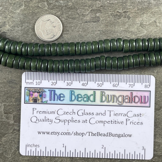 Dark Green Wooden Beads, 8mm Dark Forest Green Rondelle Beads (9588) * 16" Strand