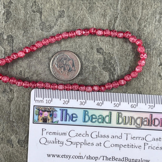 Czech Glass Beads - 4mm English Cut, Ruby Red with Pink Wash and Etched Finish (EC/N-0118) * Qty. 50
