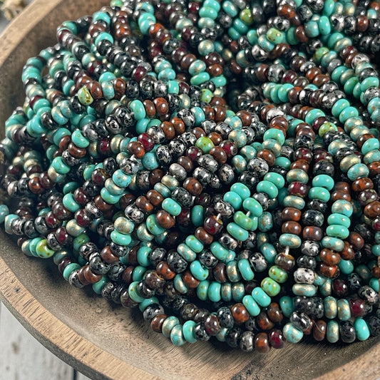 Aged Picasso Seed Beads - 2/0-3/0 Czech Glass, Rustic Earthtone Bead Mix (2/0-Caribbean) * 20" Strand