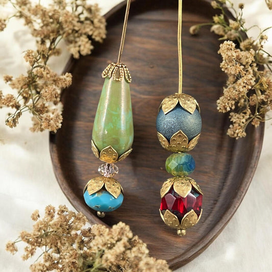 Two Tone Blue and Gold Large Hole Czech Beads, 6mm Round Druk Melon, Czech Glass Beads - Aqua, Sapphire and Gold (BH6/N-064) * Qty 25