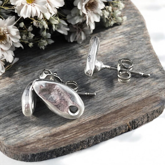 Antiqued Silver Earring Post, Small 11.5x6mm Organic Oval Earring with hole for Dangles (PF/14938-77) * Qty. 4