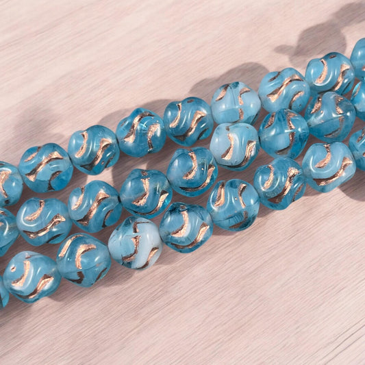 Czech Glass Beads, 8mm Blue Knots with Copper Wash, Sky Blue Glass Beads (Knot-bc) * Qty. 15