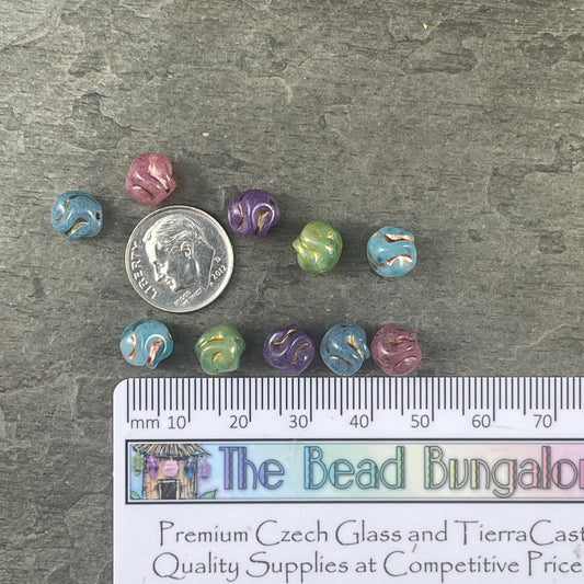 Czech Glass Beads, 8mm Purple Knots with Bronze Wash, Milky Lavender Glass Beads (Knot-lb) * Qty. 15