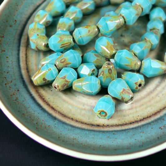 Czech Glass Beads, Colorful Mix of Faceted Teardrop Pairs, 8mm Glass Teardrop Assortment (BBEM/628.06) * Qty. 20