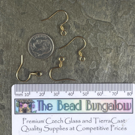 Hypoallergenic Gold Ear Wires, 18k Gold Plated 304 Stainless Steel, 18mm French Hook with Bicone Coil (H436-04G) * Qty. 30