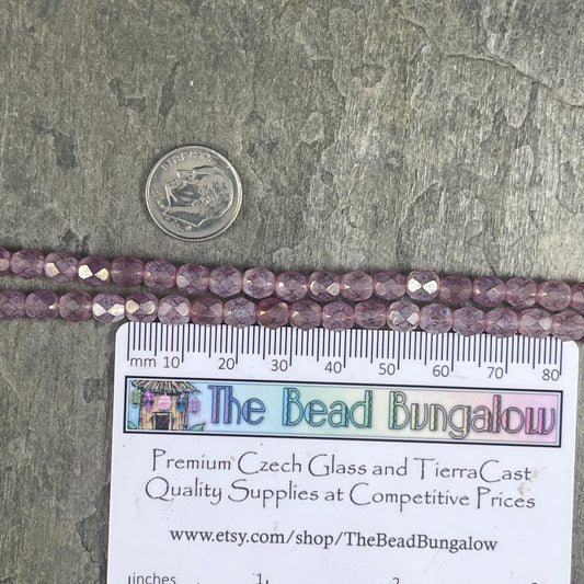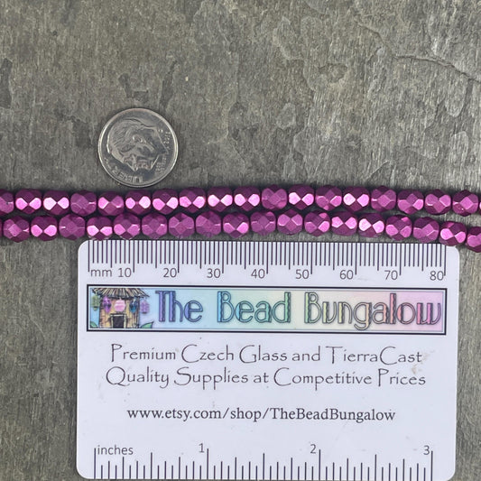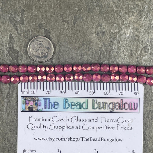 Czech Glass Beads - 6mm Faceted Round Beads, Metallic Yarrow Pink (FP6/SM-77062) * Qty. 25