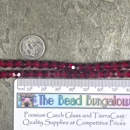 Czech Glass Beads - 6mm Faceted Round Beads, Transparent Ruby Red Beads (FP6/SM-9010) * Qty. 25