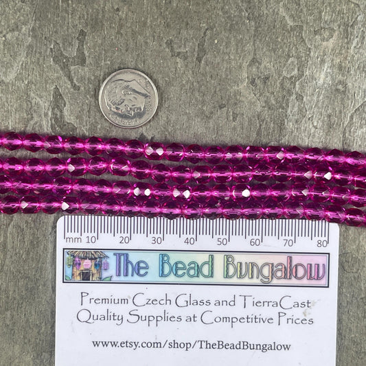 Czech Glass Beads - 6mm Faceted Round Beads, Transparent Magenta Pink (FP6/SM-F0734) * Qty. 25