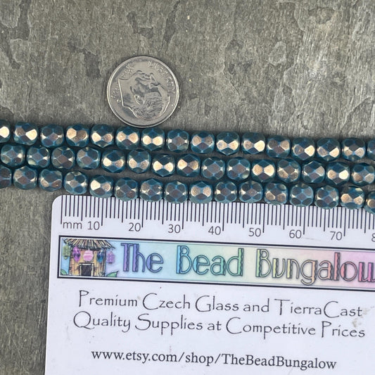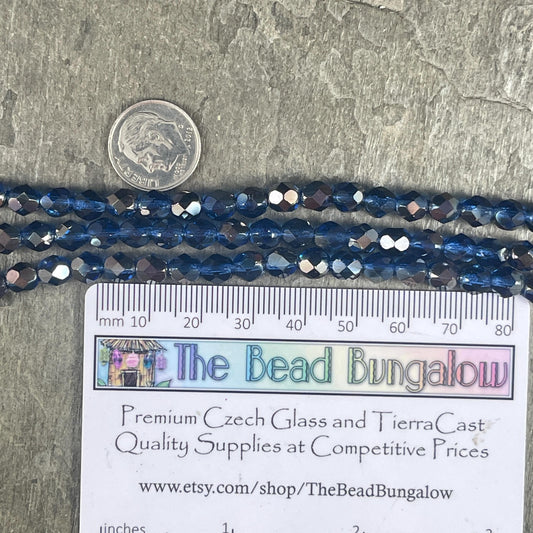 Czech Glass Beads - 6mm Faceted Round Beads, Sapphire Celsian (FP6/SM-z3005) * Qty. 25
