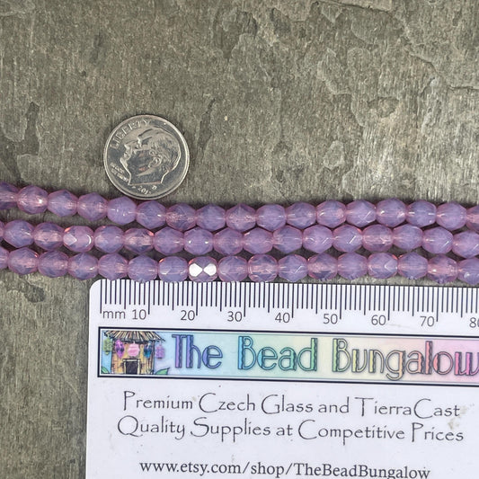 Czech Glass Beads - 6mm Faceted Round Beads, Milky Lavender (FP6/SM-71010L) * Qty. 25