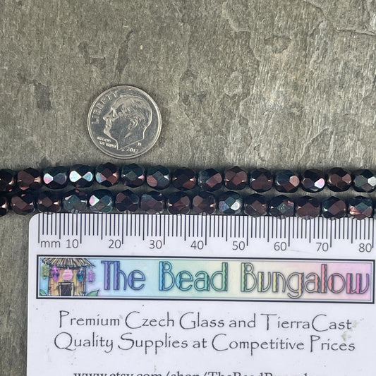 Czech Glass Beads - 6mm Faceted Round Beads, Metallic Wine, Plum Luster (FP6/SM-B15726) * Qty. 25