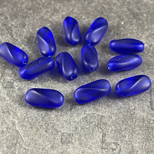 Cobalt Blue Twisted Oval Beads Matte Finish Cobalt Blue Bead 14x6mm Blue Czech Glass Beads (SPI/RJ-1717) * Qty. 12