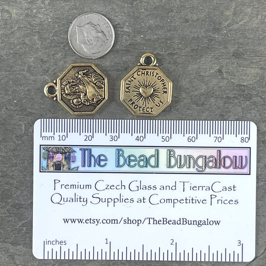TierraCast Charms St. Christopher Drop Keep The Faith Collection Antiqued Gold Double Sided Pendant (TC/2584-26) * Qty. 2
