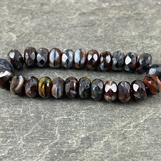 Czech Glass Beads - 5x7mm Faceted Rondelle, Blended Glass, Multi-color, Black, Red, Brown, Gray Mix (R7/RJ-0768) * Qty. 25