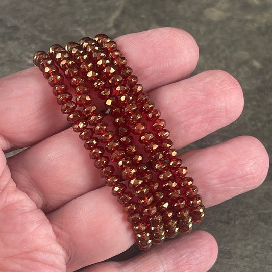 Faceted Ruby Red Czech Glass Rondelles ~ Transparent Red with Golden Luster ~ 4x2.5mm Red Spacer Beads (RON3/N-0681) * Qty. 50