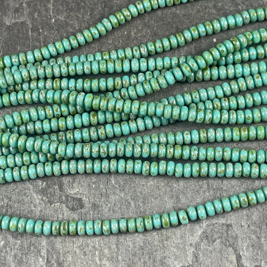 Czech Glass Beads - 3x2mm Heishi Rondelle, Turquoise Picasso Beads (RD3/SM-T6313) * Qty. 100
