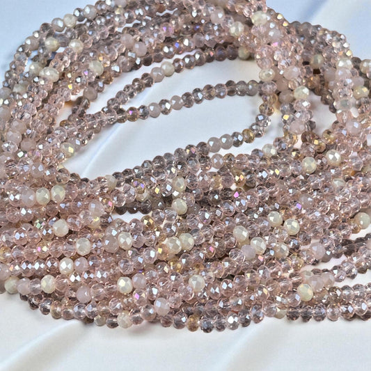 Tiny Mixed Glass Beads, Pale Vintage Pink and Beige 3x2mm Faceted Glass Beads (Vintage Pink) - 15" Strand