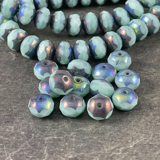 8x6mm Minty Blue Faceted Czech Glass Rondelles ~ Pale Blue with Blue/Bronze Picasso and AB Finish (R8/N-1172) * Qty. 25