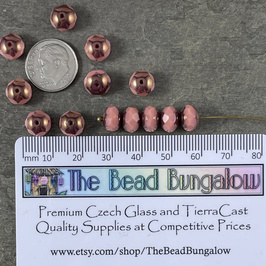 Czech Glass Beads - 8x6mm Faceted Rondelle, Dusty Pink with Bronze Picasso Beads (R8/N-1184) *