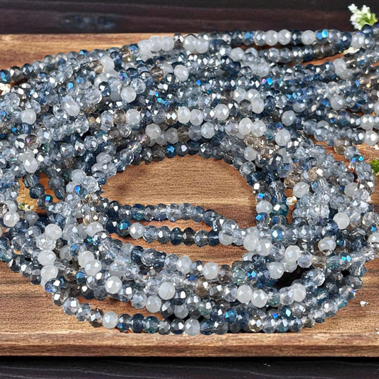 Tiny Mixed Glass Beads, Sapphire and Light Blue 3x2mm Faceted Glass Beads (Denim Blues) - 15" Strand