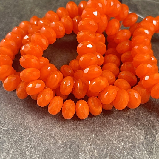 Czech Glass Beads - Bright Orange Silk 5x7mm Rondelle, Orange Opaline Glass (R7/RJ-2762) * Qty. 25