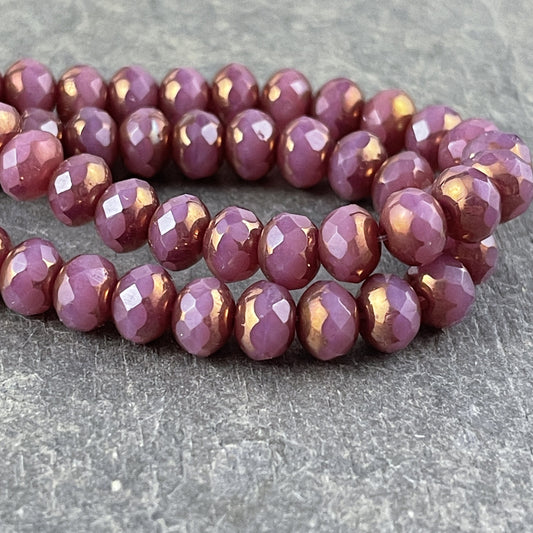 Mauve Pink Czech Glass Beads, 7x5mm Rondelle, Opaque Pink Silk Picasso Glass Beads (R7/N-1265) * Qty. 25