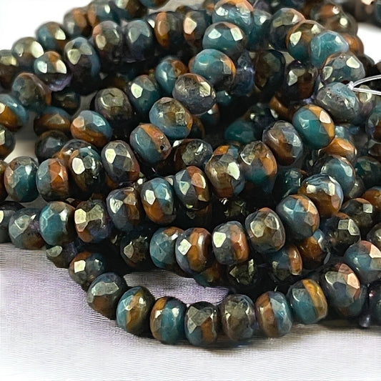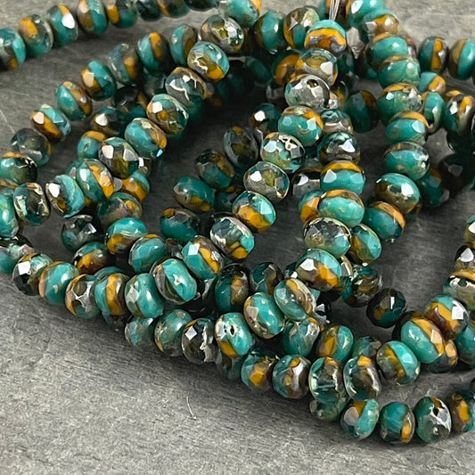Opaque Teal and Mustard Orange with Golden Finish Czech Glass Beads 5x3mm Rondelle Rustic Faceted Rondelles (R5/RJ-2695) * Qty. 30