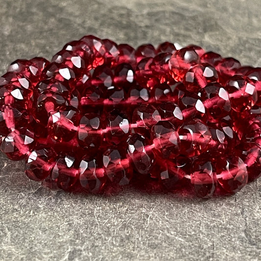 Czech Glass Beads - Cranberry Red 5x7mm Rondelle, Transparent Cranberry Red Rondelle (R7/RJ-0798) * Qty. 25
