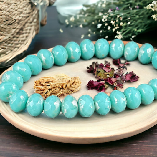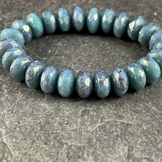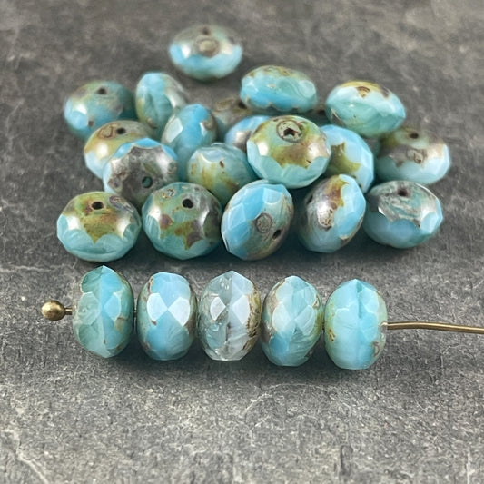 Light Turquoise or Tea Green Czech Glass Rondelles ~ 7x5mm Aqua Blue with Silver Picasso Faceted Beads (R7/N-0888) * Qty. 25