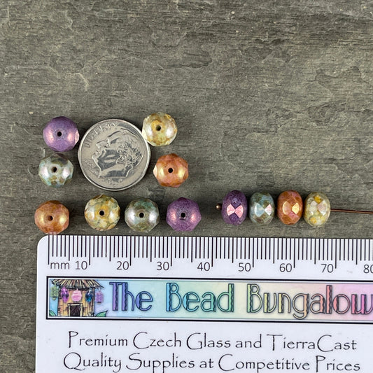 Mulit Color Czech Glass Beads ~ Sage, Lavender, Slate Blue and Apricot Picasso Beads ~ 8x6mm Faceted Rondelles (R8/N-0573) * Qty. 16
