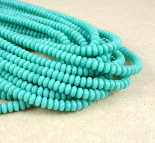 Czech Glass Beads - 4x2mm Turquoise Rondelle Opaque Turquoise Beads Turquoise Heishi Rondelle Blue Spacer Beads (RD4/SM-6313) - Qty. 100