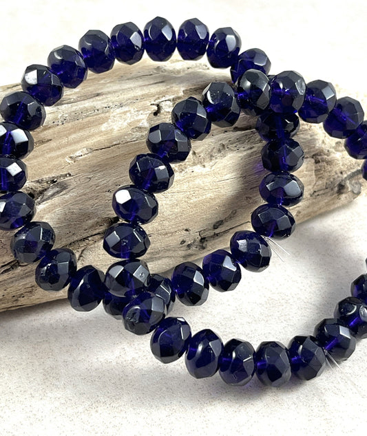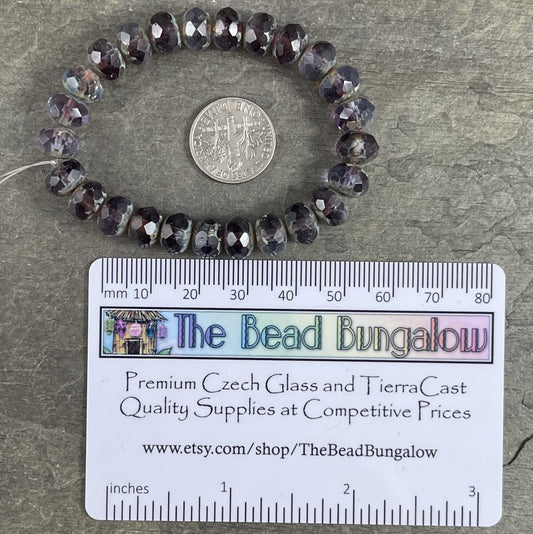 Czech Glass Beads Dark Purple Faceted Rondelle 8x6mm Rondelle Deep Purple Glass Beads (R8/RJ-0430) - Qty 12