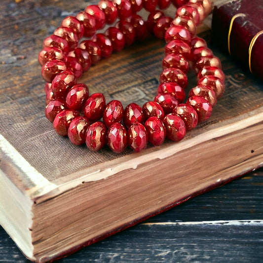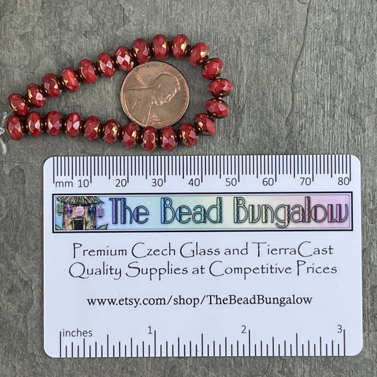 Dark Red Opaline Czech Glass Beads ~ 5x3mm Rondelle ~ Opaque Cranberry Red Glass with Bronze Picasso (R5/N-0262) * Qty. 30