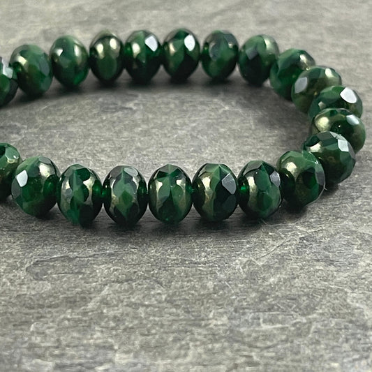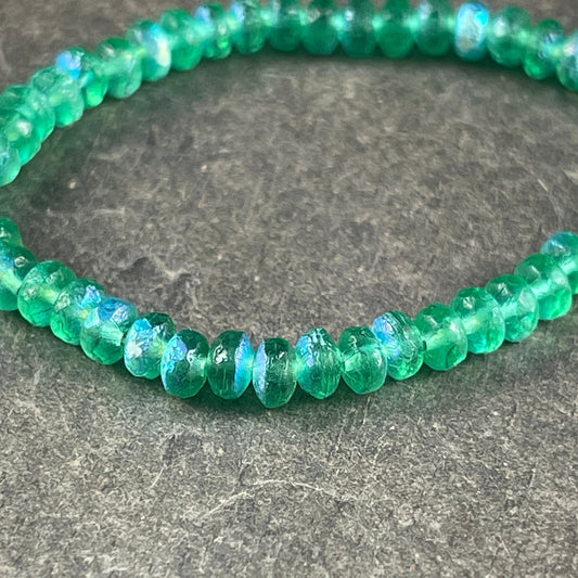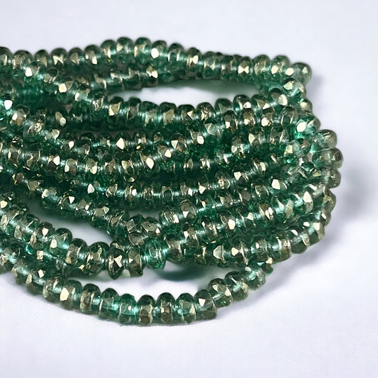 Faceted Emerald Green Czech Glass Rondelles ~ Green with Golden Luster ~ 4x2.5mm Transparent Green Spacer Beads (RON3/N-1716) * Qty. 50