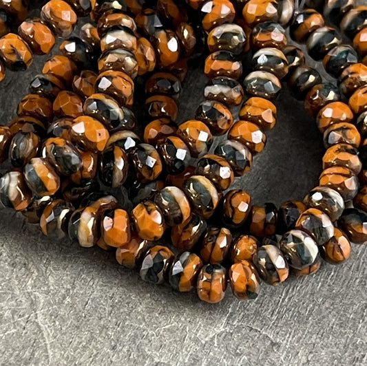 Orange Green Tourmaline and Ivory Picasso Beads 5x3mm Rondelle Multi-Color Czech Glass Beads (R5/RJ-2683) * Qty. 30