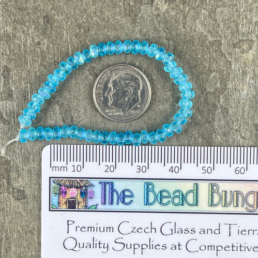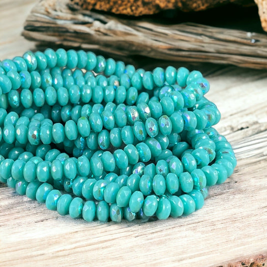 Small Faceted Turquoise Rondelles ~ Opaque Light Turquoise AB Czech Glass Rondelles ~ 4x2.5mm Blue Beads (RON3/N-1715) * Qty. 50
