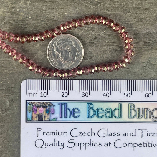 Faceted Fuchsia Pink Czech Glass Rondelles, 4x2.5mm Pink Spacer Beads (RON3/N-1283) * Qty. 50