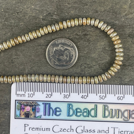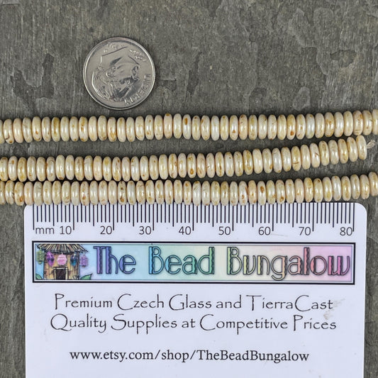 Czech Glass Beads - 6x2mm Heishi Rondelle, Ivory Beige Picasso Spacer Bead (RD6/SM-P65401) * Qty. 50
