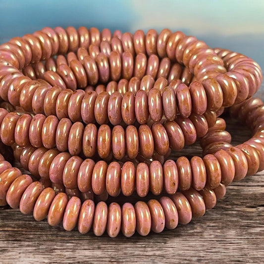 Salmon Pink with Golden Picasso Finish, 6x2mm Rondelle, Czech Glass Beads (RD6/RJ-4577) * Qty. 50
