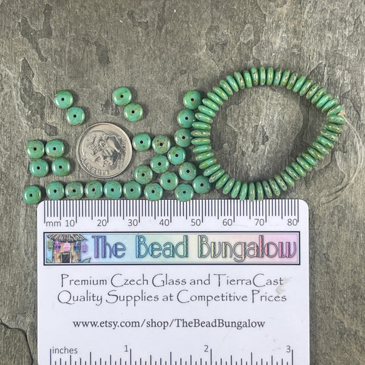 Czech Glass Beads - Turquoise Green Picasso Beads, 6x2mm Rondelle (RD6/RJ-3503) * Qty. 50