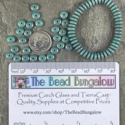 Czech Glass Beads, 6x2mm Sage Green Luster Heishi Rondelle Spacer Bead (RD6/SM-P65431) * Qty. 50