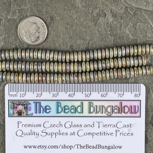 Sage Green Czech Beads ~ 4x2mm Rondelle ~ Czech Glass Beads - Opaque Green Luster Picasso Heishi Rondelle (RD4/SM-P65431) * Qty. 100