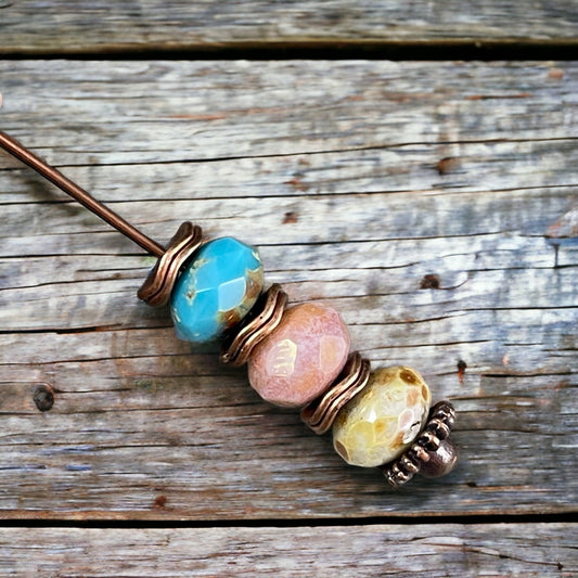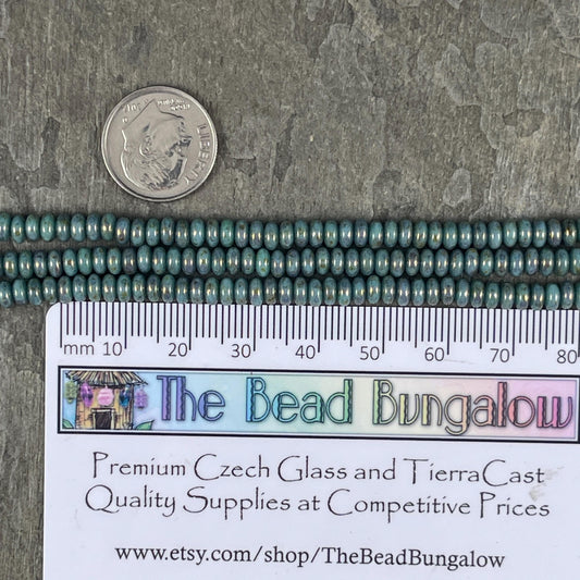 Turquoise Picasso 4x2mm Rondelle Blue and Bronze Czech Glass Beads - Turquoise Bronze Picasso Heishi Rondelle (RD4/SM-BT6313) * Qty. 100