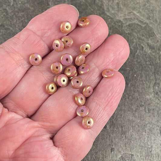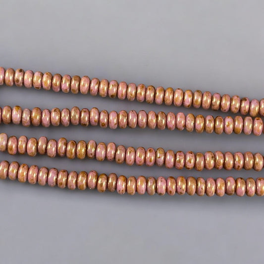 Czech Glass Beads - Rose Gold Topaz 4x2mm Heishi Rondelle Opaque Topaz Luster Czech Beads (RD4/SM-P65491) * Qty. 100