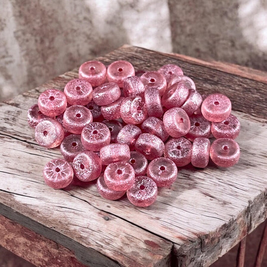 6mm Pink Heishi Rondelle, Czech Glass Beads, Etched Dusty Rose with Shimmery Pink Finish (HSH/N-0306) * 50 Beads