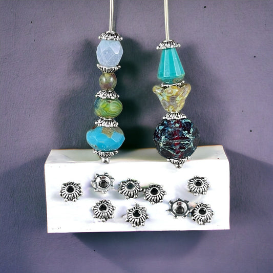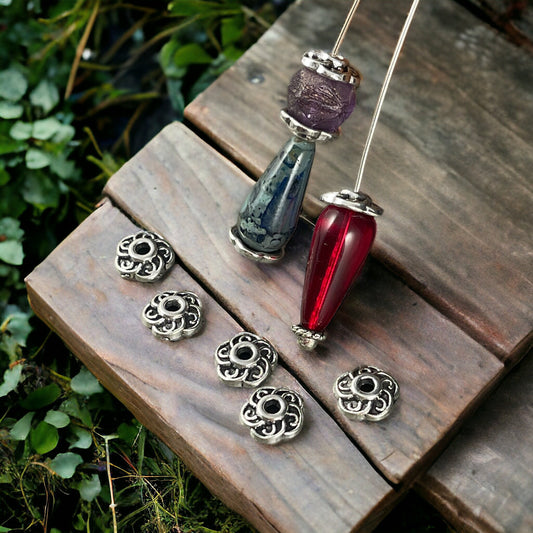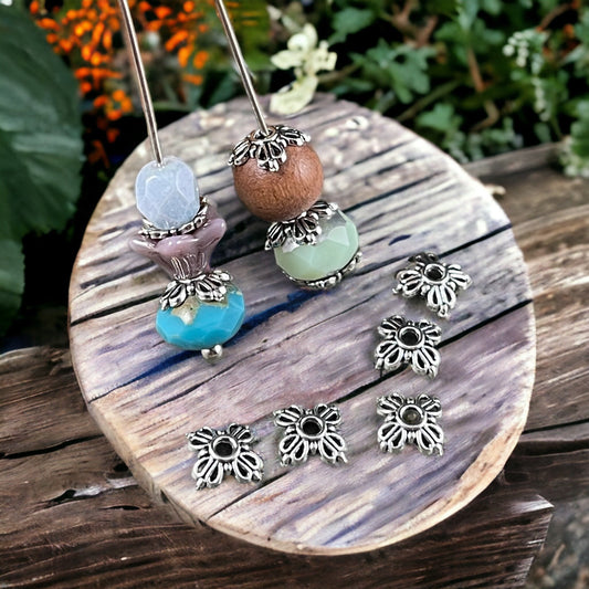 Antiqued Silver Bead Caps ~ Filigree 6-Petal Design, 6mm Cone Bead Caps, Tibetan Style (AA296) * Qty. 50