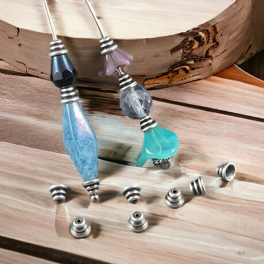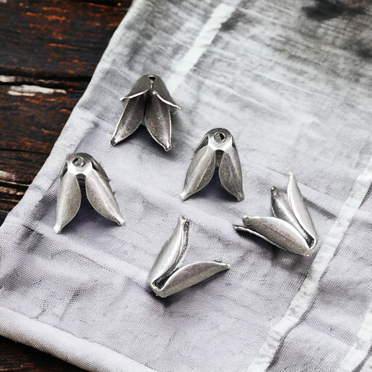 Oxidized Silver Plated Brass Floral Theme Bead Caps, Curled Tulip Petal Bead Caps, 10mm Expandable and Bendable (VJS/A68) * Qty. 8