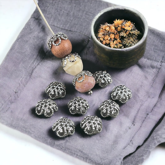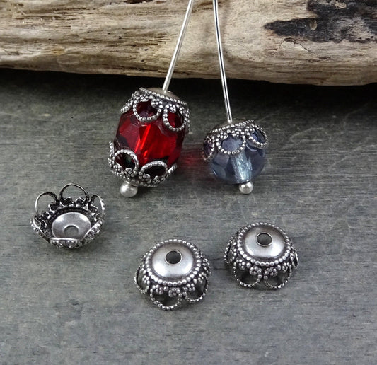 9mm Oxidized Silver Bead Caps ~ Bendable, Filigree Bead Caps ~ Oxidized Sterling Silver Plated Brass (VJS-BB68) * Qty. 6
