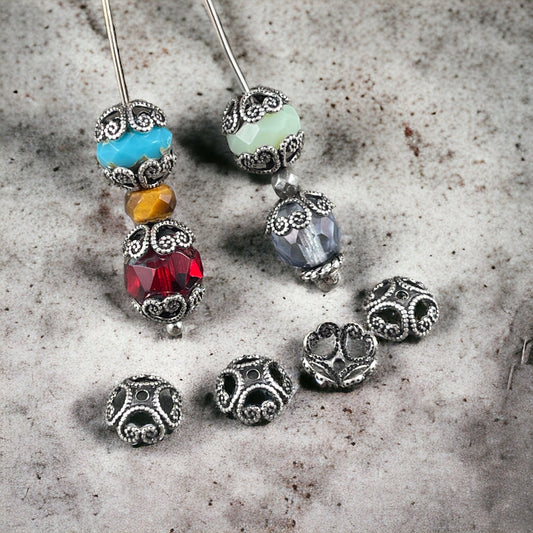 8mm Filigree Bead Caps, Silver Bead Caps, Antiqued Silver Bead Caps, 8mm Bead Caps, Oxidized Silver Bead Caps (VJS-R37) * Qty. 8